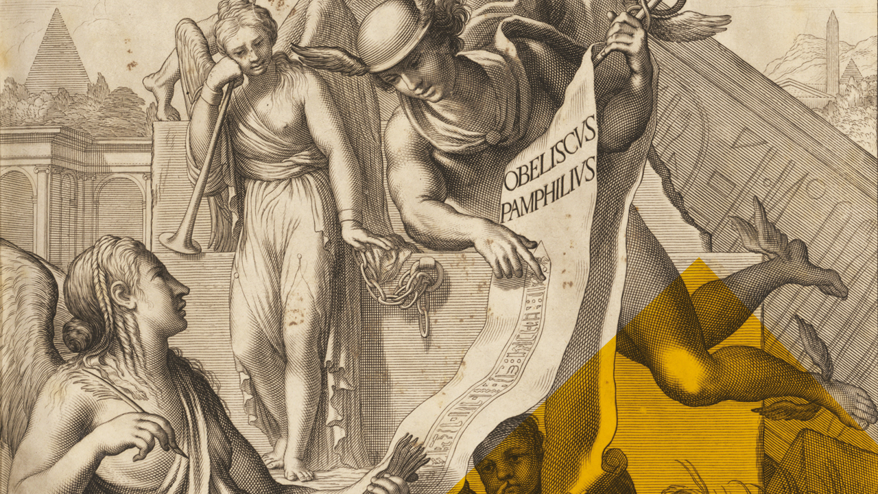 Légende du visuel de la galerie photos Détail de l’affiche de l’exposition Source : Kircher, Athanase, Obeliscus Pamphilus [Obélisque Pamphile], Rome, 1650, in-folio, 560 p., illustrations. Copyright Uliège Library.
